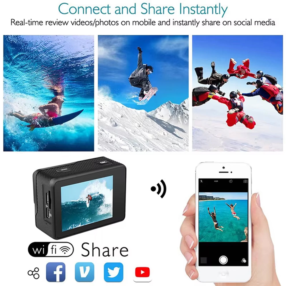 AdrenActi’s advanced 6-axis gyroscope electronic image stabilization works like a virtual gimbal, automatically smoothing out camera movements even during extreme activities. The sophisticated EIS system supports stabilization at 4K30FPS, 2.7K30FPS, and 1080P60/30FPS, ensuring your most adrenaline-pumping moments translate to professional, watchable footage.